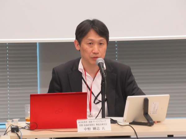 冒頭の矢野座長のご挨拶に続き、中野 剛志 氏(経済産業省 商務・サービスグループ 消費・流通政策課長 物流企画室長)より「『持続可能な物流の実現に向けた検討会』について」と題し、物流業界が直面している諸課題の解決に向けた取組を進め、持続可能な物流の実現につなげるための方策を検討している本検討会の最終とりまとめ案に関して、ご講演いただきました。