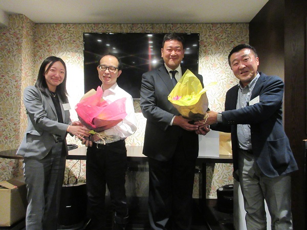 総会後の懇親会では、本総会を以って卒業される2名の方の卒業セレモニーを開催しました。記念品や花束の贈呈を行い、青年部での思い出についてお話頂きました。最後は、平野副幹事長による中締めでお開きとなりました。