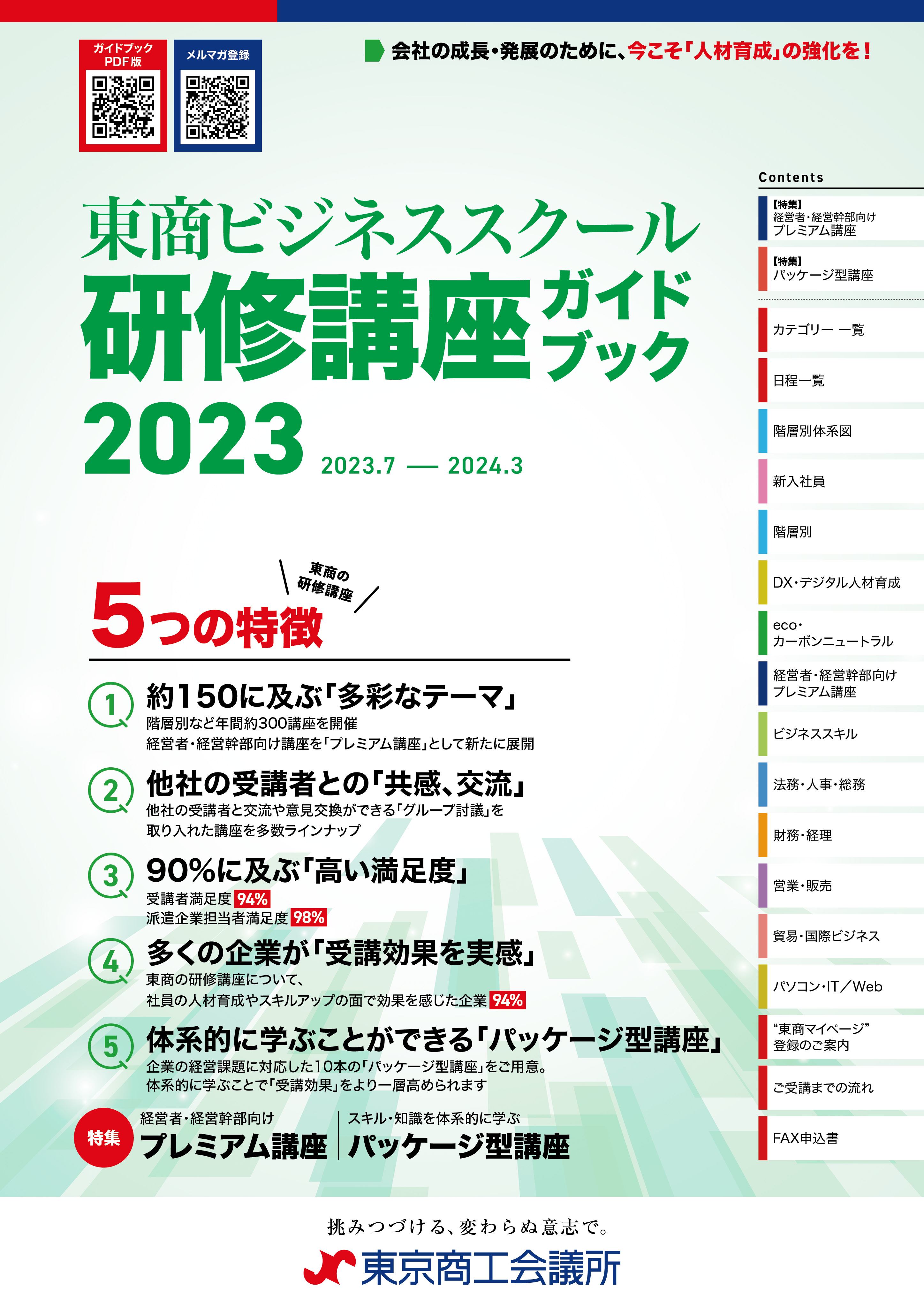 東京商工会議所 研修センターは、2023年度研修ガイドブック 7月号を発行しました。