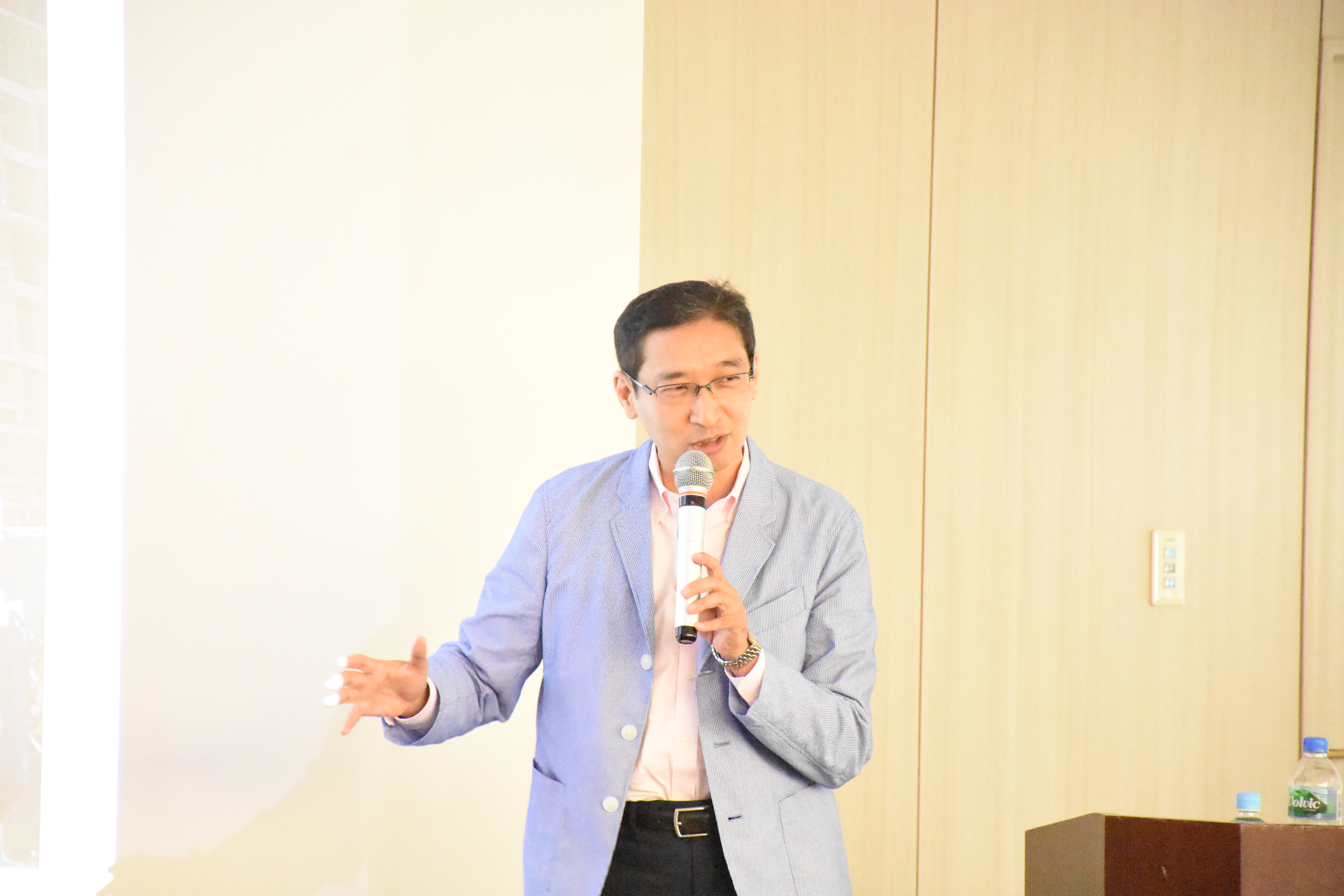 冒頭、中小企業国際展開推進委員会の柿崎共同委員長より開会挨拶をしたのち、第一部では、昨今「アジアのラストフロンティア」と呼ばれ、急成長しているミャンマーについて、「スー・チー政権、ミャンマービジネスの光と影」と題し、永杉豊氏(MYANMAR JAPON CO.,LTD. 代表取締役社長)よりご説明いただき、続けて「ティラワ経済特別区~ミャンマー投資のいま~」と題し、和智聡氏(住友商事株式会社)よりご説明いただきました。また、第二部では、依然として海外展開先として人気の高いベトナムについて「ベトナムビジネス環境最新事情」と題し、齊藤正之氏(株式会社VCC)より説明いただきました。