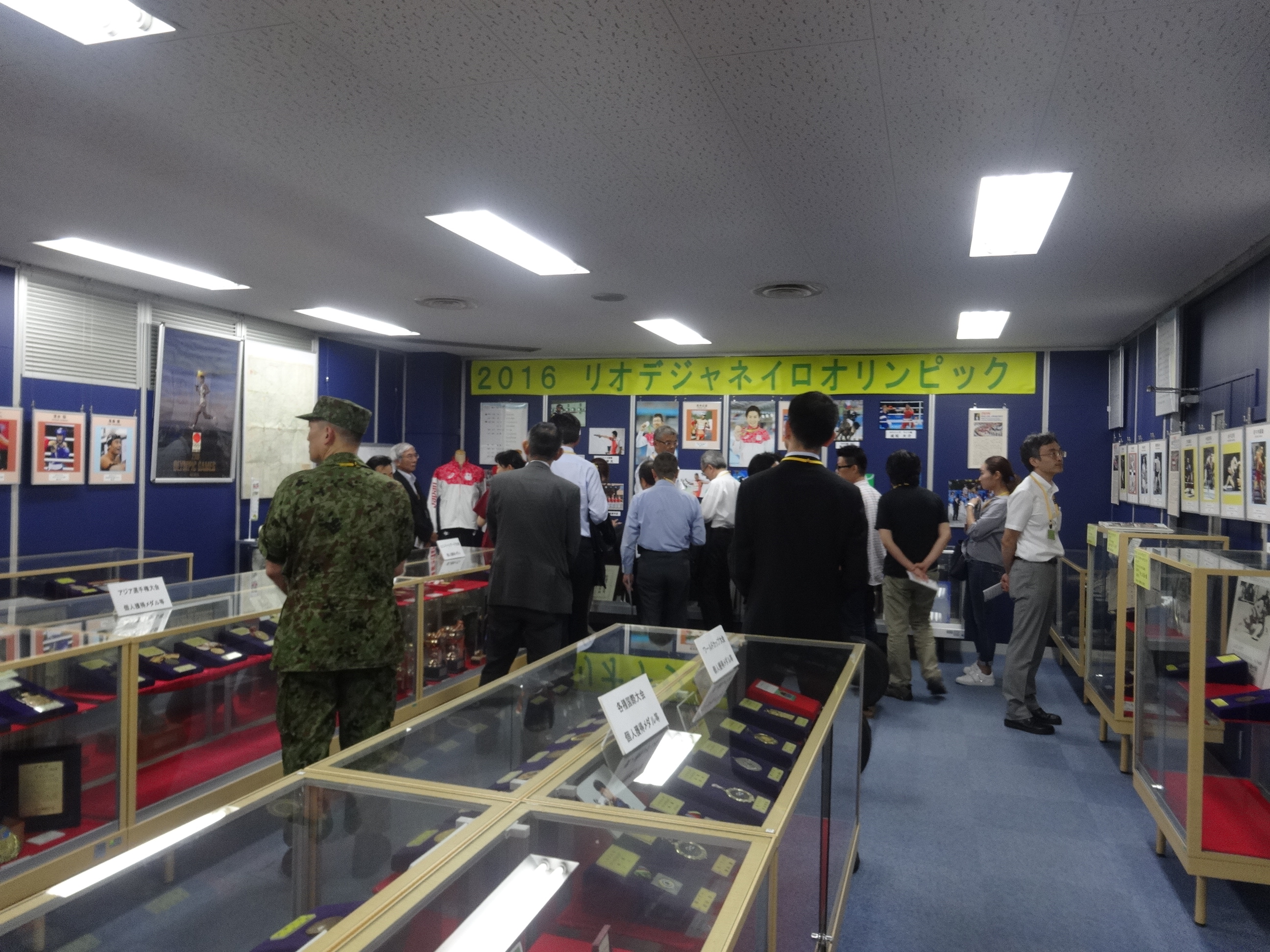 駐屯地では、広報センター、総監部庁舎、体育学校、厚生センター等を見学しました。東部方面隊の司令部にて首都直下地震の対応などの説明を受け、自衛隊体育学校では東京2020オリンピックに向けての取り組みや過去大会での自衛官選手の活躍についてお話を伺いました。