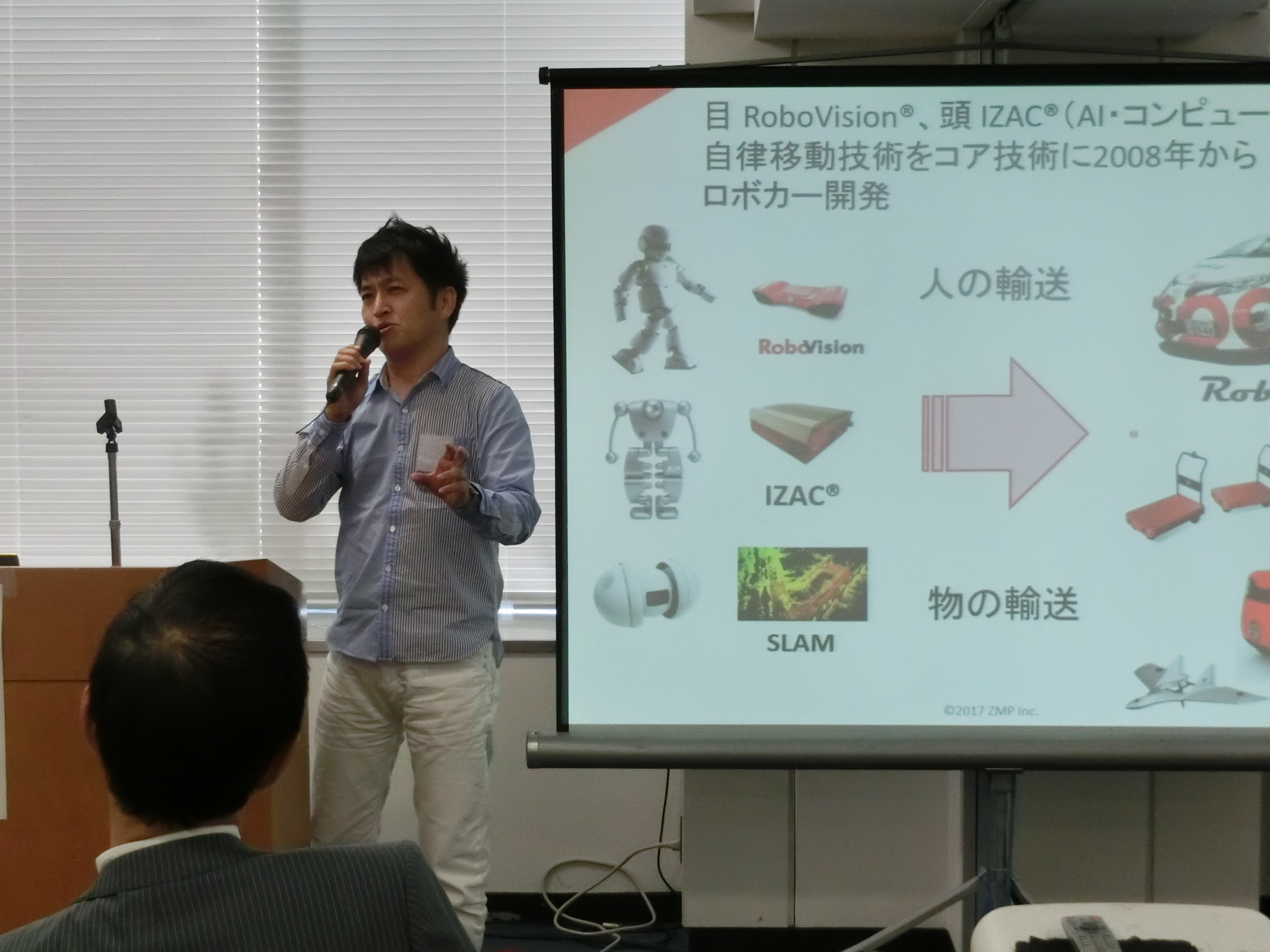 また、続く第2部では、「自動運転技術をビジネスにする秘訣~自動運転技術の応用」と題し、株式会社ZMP 代表取締役社長 谷口恒氏より、自動運転技術を応用した「ロボット」の活用事例や、同技術の普及・発展によって生まれるビジネスチャンスについてお話を伺いました。