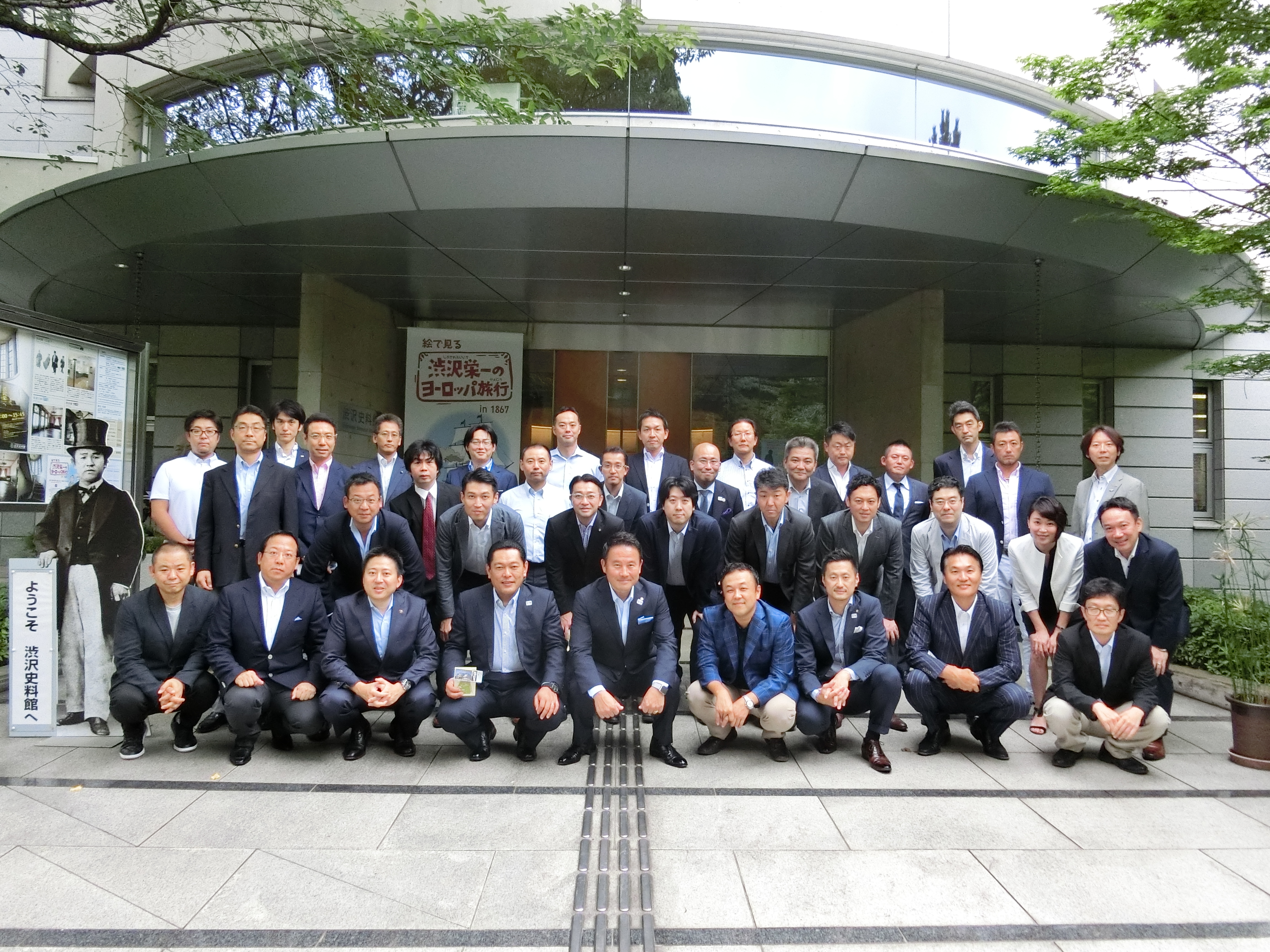 冒頭、佐藤会長があいさつを行い、「青年部設立趣意書では、我々青年経済人が渋沢翁の理念を