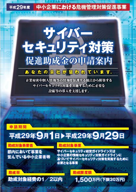 ICT(情報通信技術)総合支援サイト「東商ICTスクエア」に「サイバーセキュリティ対策促進助成金のお知らせ」をアップしました。