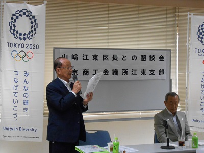 東京商工会議所江東支部は7月21日、「第94回役員会、第89回評議員会」、「区長との懇談会」を江東区産業会館で開催しました。