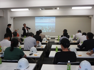 渋谷駅前再開発エリアの視察では、東京急行電鉄株式会社のご担当者から開発計画、工事の進捗状況などに関して説明があった後、実際に工事現場を視察しました。