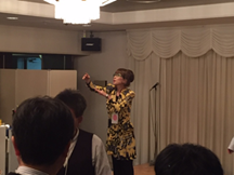 参加者による1対1の自己紹介後、劇団・東京夜間飛行所属の女優・原真善美氏が演じる「ガーベラ夫人」の一人芝居を鑑賞しながらのフリータイムやフリートークを通じて、参加者間の積極的な交流が図られ、会場は大いに盛り上がりました。