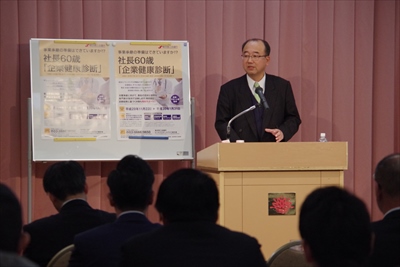 東京商工会議所墨田支部(会長=阿部貴明・丸源飲料工業社長)およびビジネスサポートデスク東京東は11月22日、昨年度に続き2回目となる社長60歳「企業健康診断」事業のキックオフ会議を開催し、地域金融機関や日本政策金融公庫の職員など70名が参加しました。