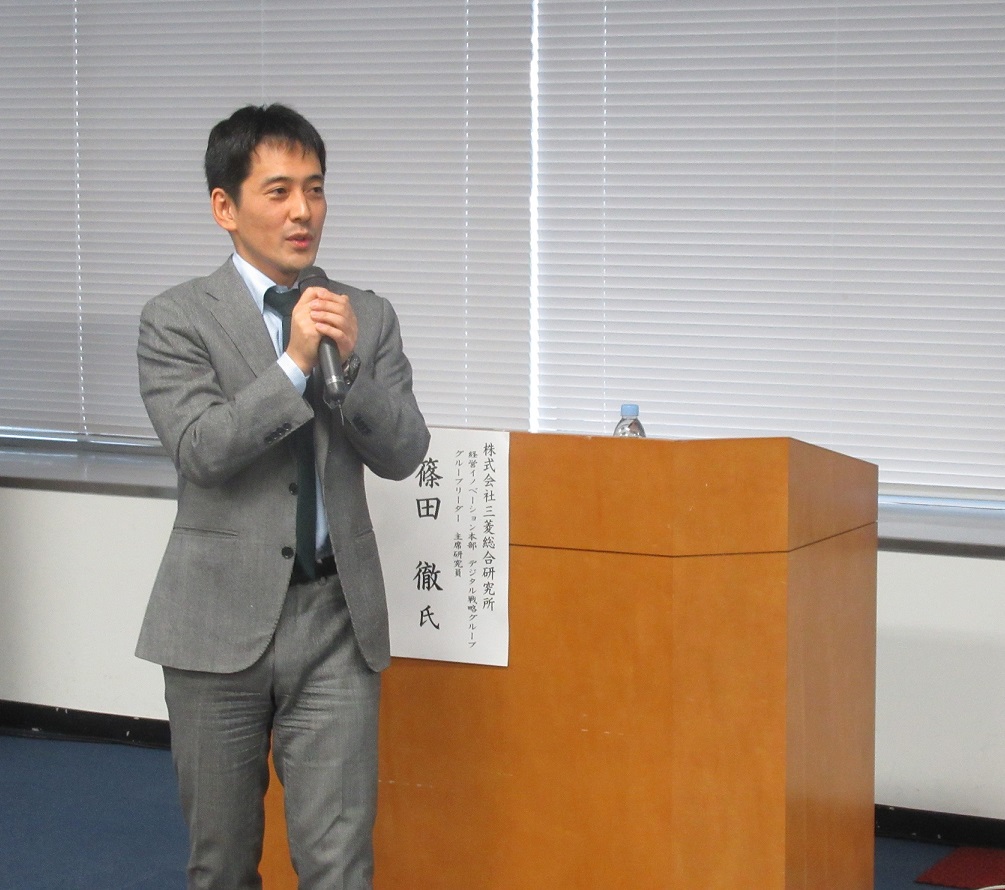 講師の株式会社三菱総合研究所 経営イノベーション本部 デジタル戦略グループリーダー 主席研究員 篠田 徹 氏から、AI活用が意思決定のための予測や最適化に効果を発揮する点を説明。また、日々の購買活動においてもAIやIoTが用いられている例を解説した。