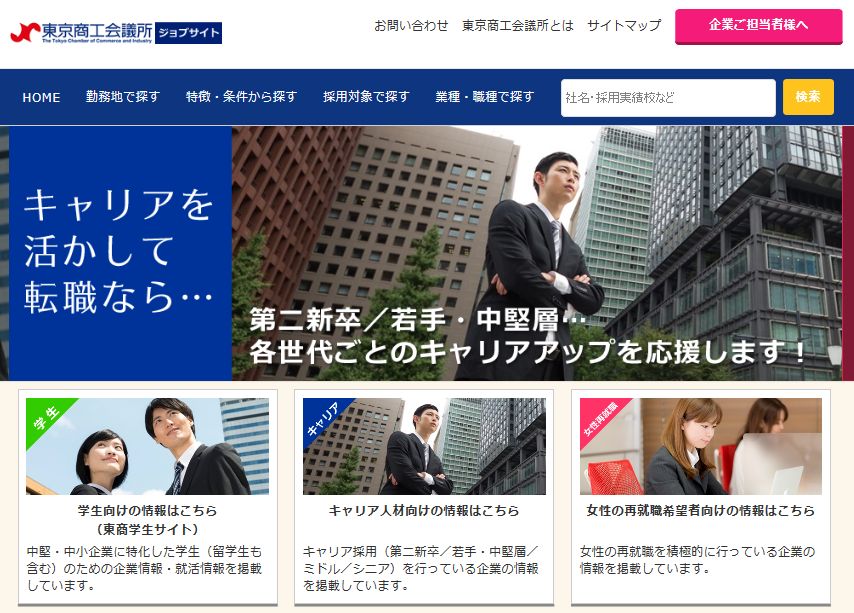 東商は、2016年より「東商学生サイト」を運営し、新卒者を採用する企業の支援を行ってきました。一方、新卒者の売り手市場化に伴う採用難から「新卒者以外も積極的に採用したい」という会員企業の声を受け、第二新卒などの中途人材や、出産・育児等ののち学び直しを経て再就職を希望する女性などへの求人情報を掲載できる当サイトを、新たにオープンするものです。