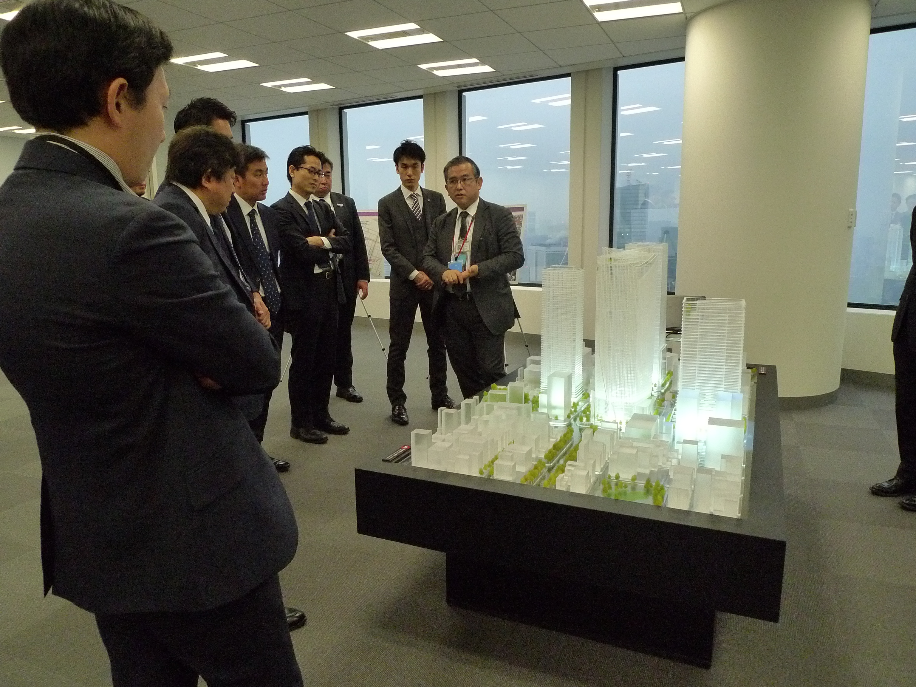 今回の懇談会では、東京・ニューヨーク・上海の各都市を1,000分の1のサイズで表現した都市模型を見学した後、森ビル株式会社都市政策企画室長の成吉栄氏より、「森ビルの都市づくりについて」と題して、都市開発への理念や、複合開発の重要性、環境への取り組み等について、事例も交えながらお話しいただきました。引き続き行われた懇親会でも活発な意見交換が行われました。