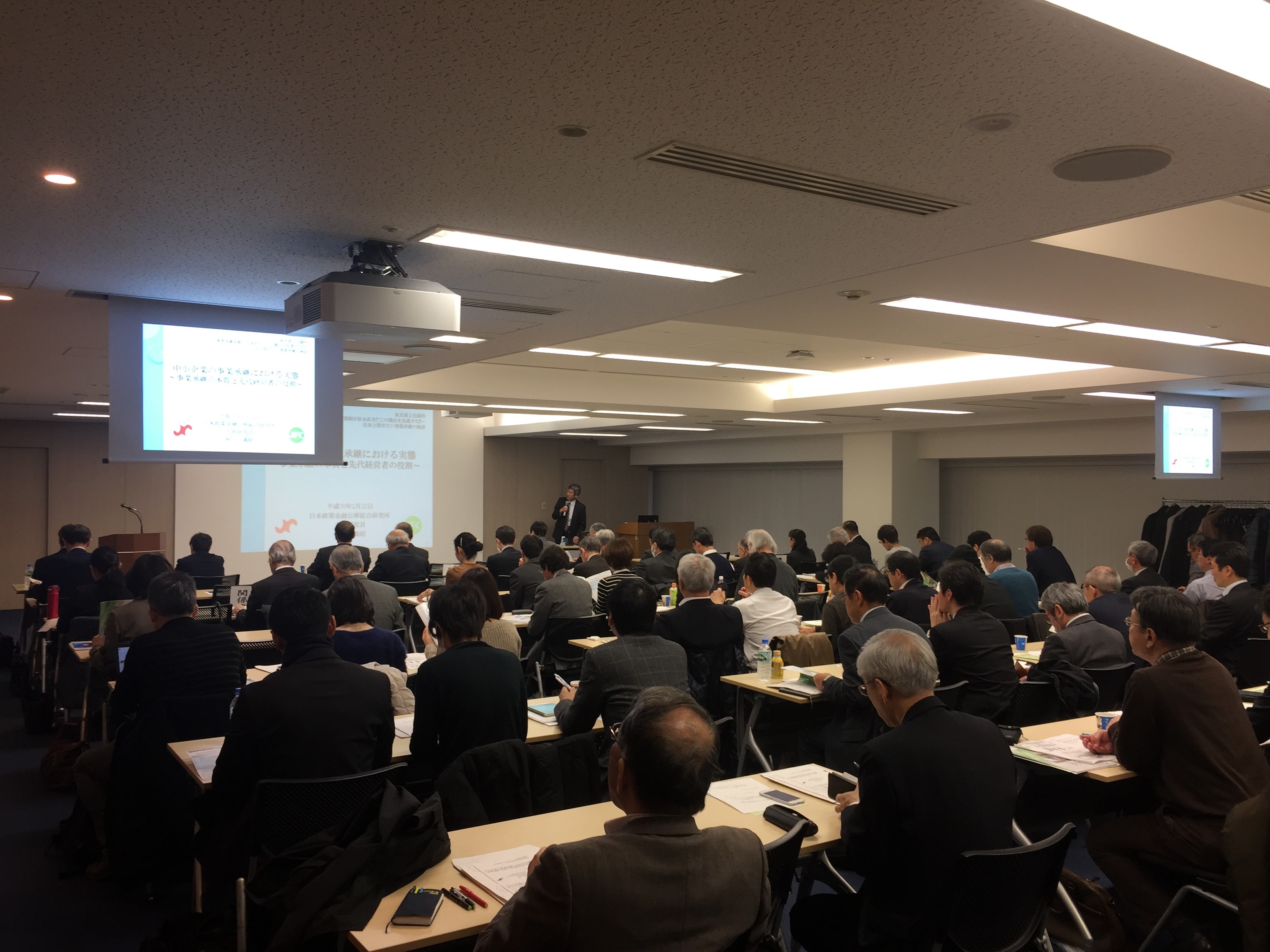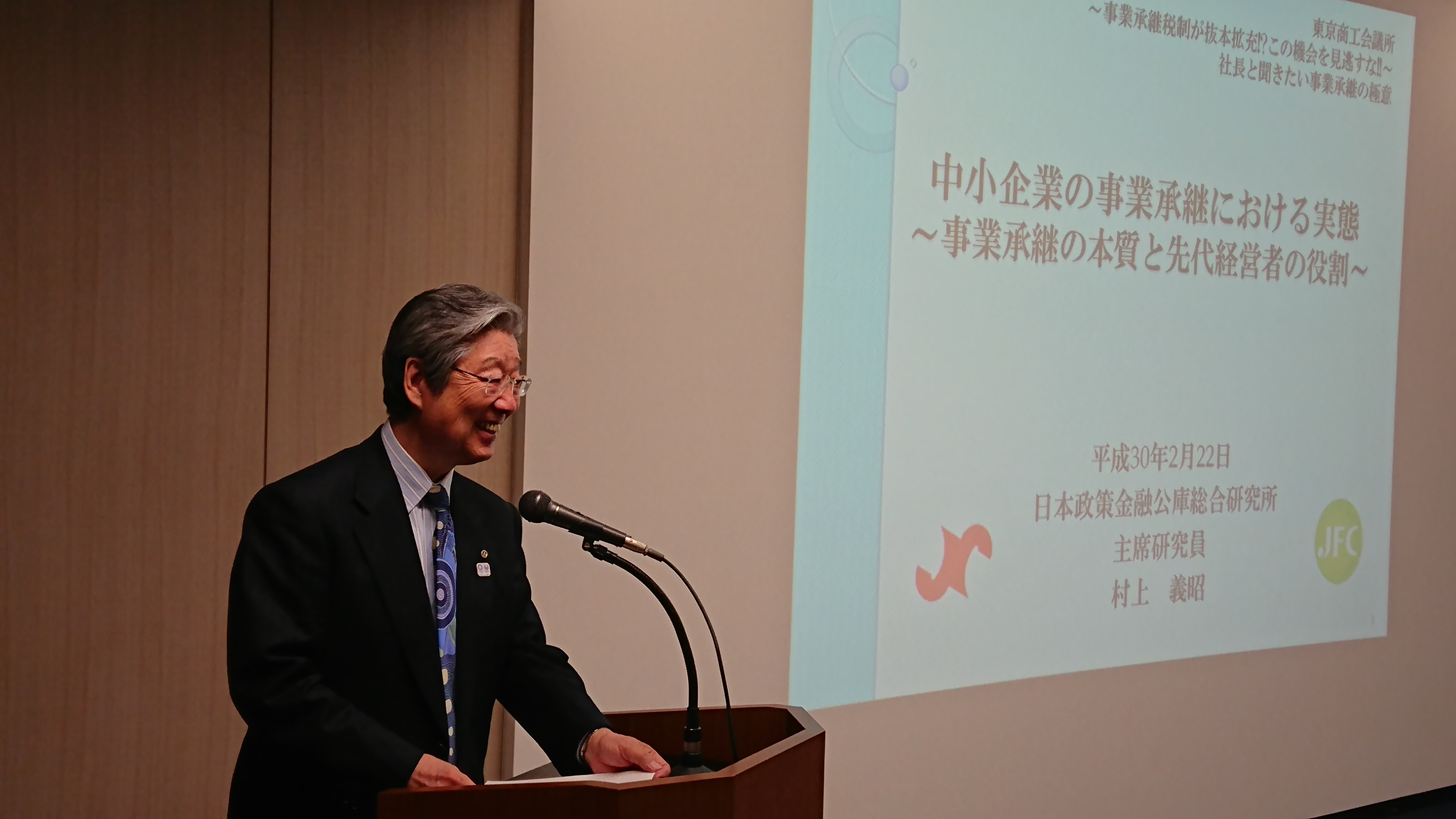 第一部では、中小企業の事業承継における実態について、日本政策金融公庫総合研究所 小企業研究第一グループ主席研究員 村上 義昭氏よりお話しいただきました。1月下旬に公表した「事業承継の実態に関するアンケート調査」結果をふまえた事業承継の実態の紹介のほか、事業承継後に新たな取り組みを行い、業況を拡大させた企業の好事例などを紹介いただきました。