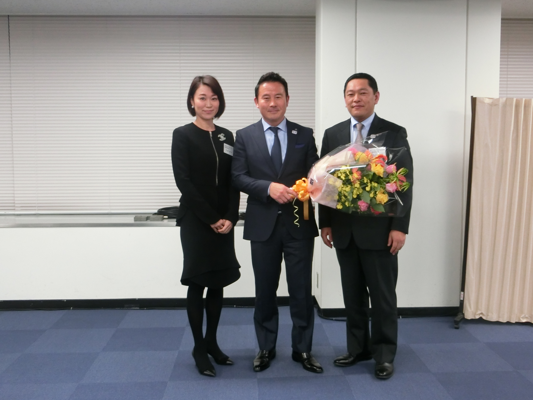 懇親会では、3月末で退任される佐藤会長へ花束が贈呈された後、次期会長に内定された