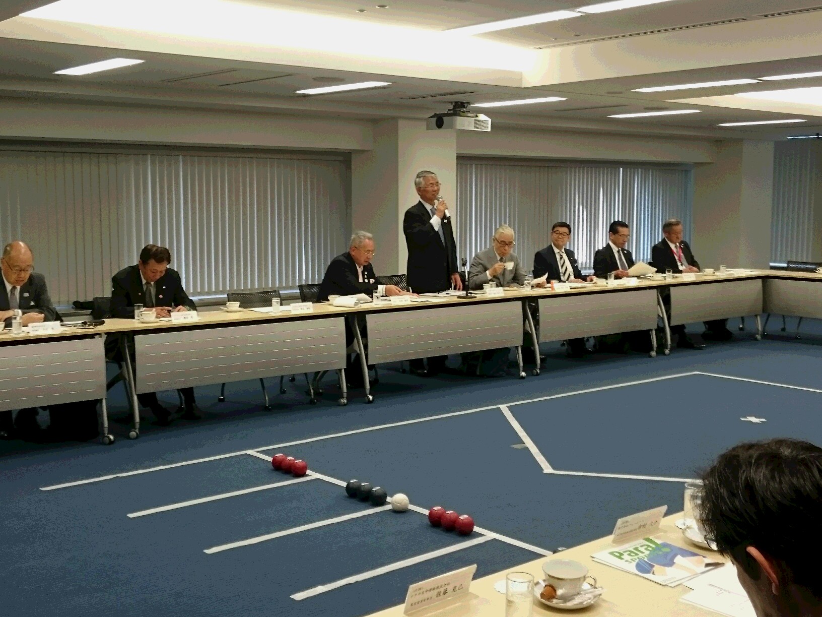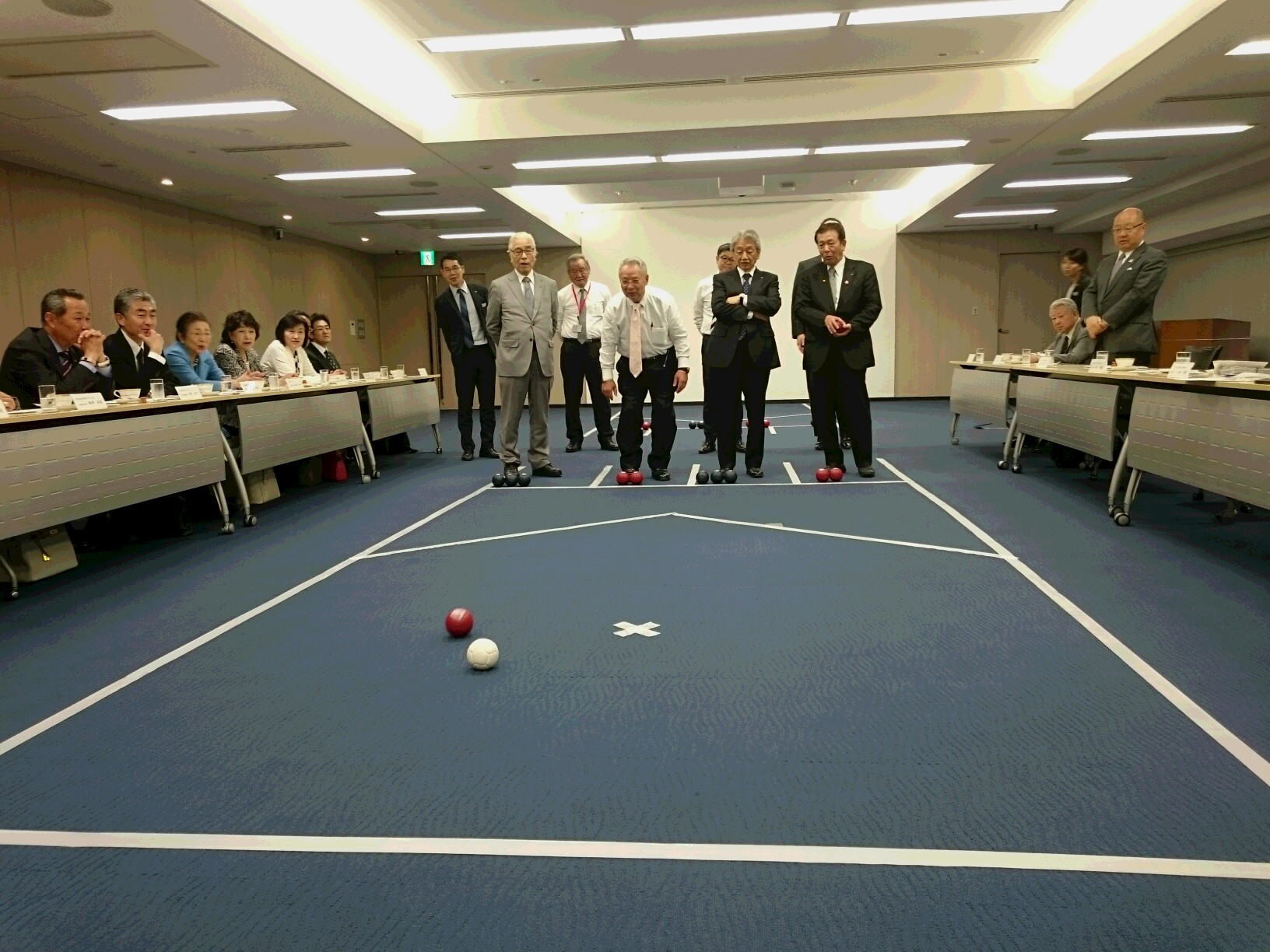 その後、ボッチャ体験会が開催され、参加された委員の皆様にパラスポーツを体験いただきました。
