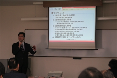東京商工会議所品川支部は3月6日、本部中小企業委員会との共催により、「基礎から解説!中小企業のための補助金・助成金活用セミナー」(講師:ユナイテッド・アドバイザーズ株式会社 代表取締役 西内孝文氏)を開催しました。