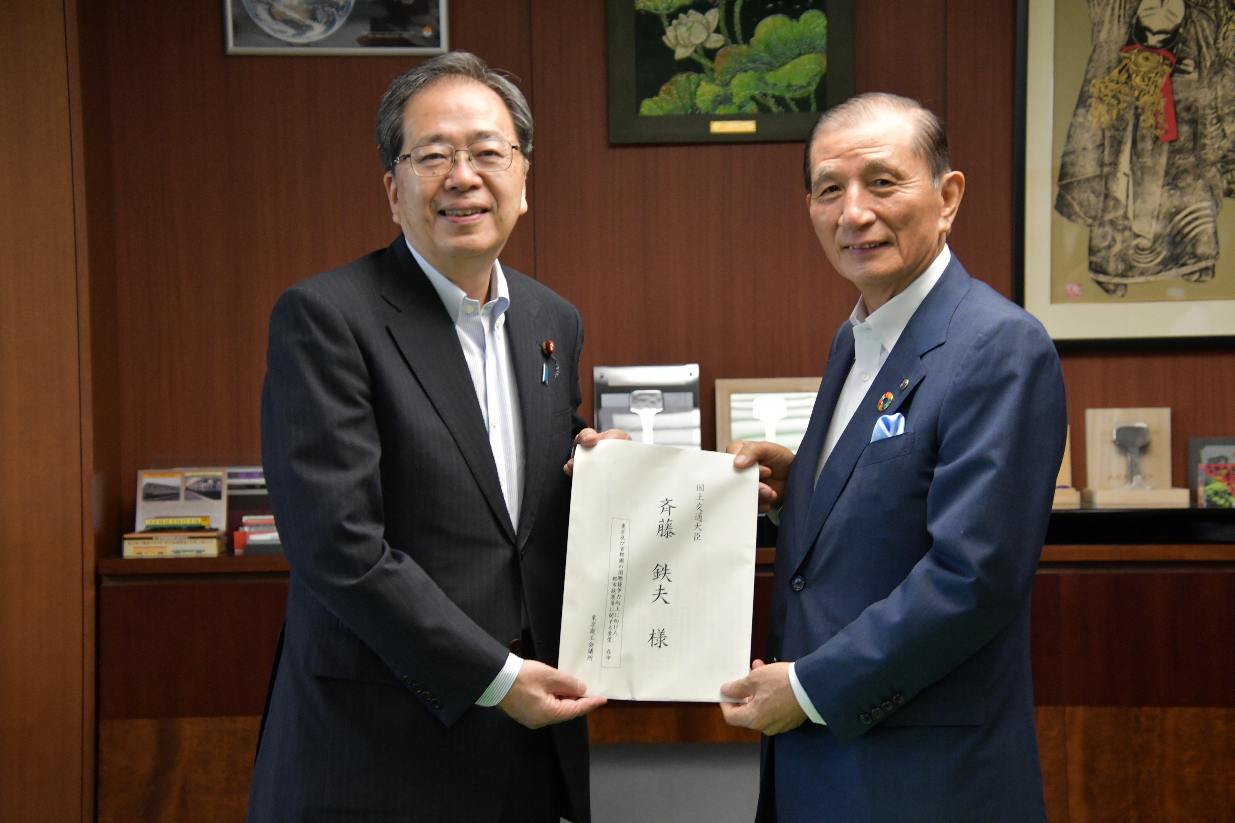 「東京及び首都圏の国際競争力向上に向けた都市政策等に関する要望」を⻫藤鉄夫・国土交通大臣に手交しました