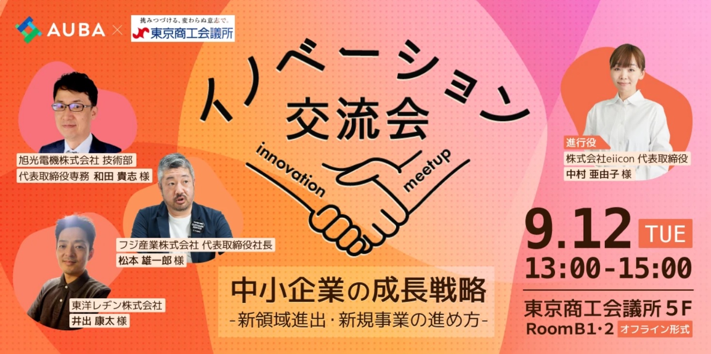9月12日【イノベーション交流会】中小企業の成長戦略 〜新領域進出・新規事業の進め方〜 を開催します(東京商工会議所×eiicon連携イベント)