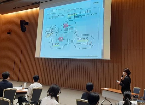 実践女子大学 文学部国文学科 教授 学長補佐 深澤晶久様による進行のもと、学生が事前に訪問企業について調べた内容を共有し、本プログラムに参加する目的などをテーマにグループワークを実施しました。その後、グループごとに成果を発表し、企業の担当者からフィードバックをいただきました。