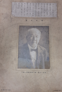 東京銀行集会所・東京商工会議所)主催のもと、渋沢の追悼会が行われた。その受付で配付された「渋沢の写真」と「御沙汰書の複製」を合わせたものを展示する。