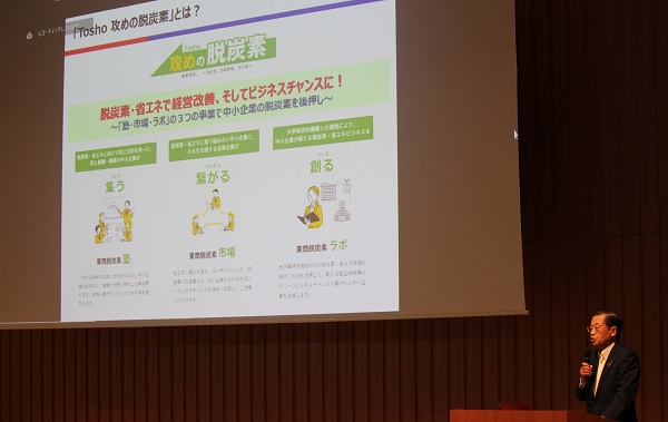 東京商工会議所(小林健会頭)は、9月4日(月)、「Tosho 攻めの脱炭素」事業(※)立ち上げのキックオフ事業として、東商脱炭素 “塾”第1回セミナーを兼ねた「『Tosho 攻めの脱炭素』キックオフセミナー」を開催しました。