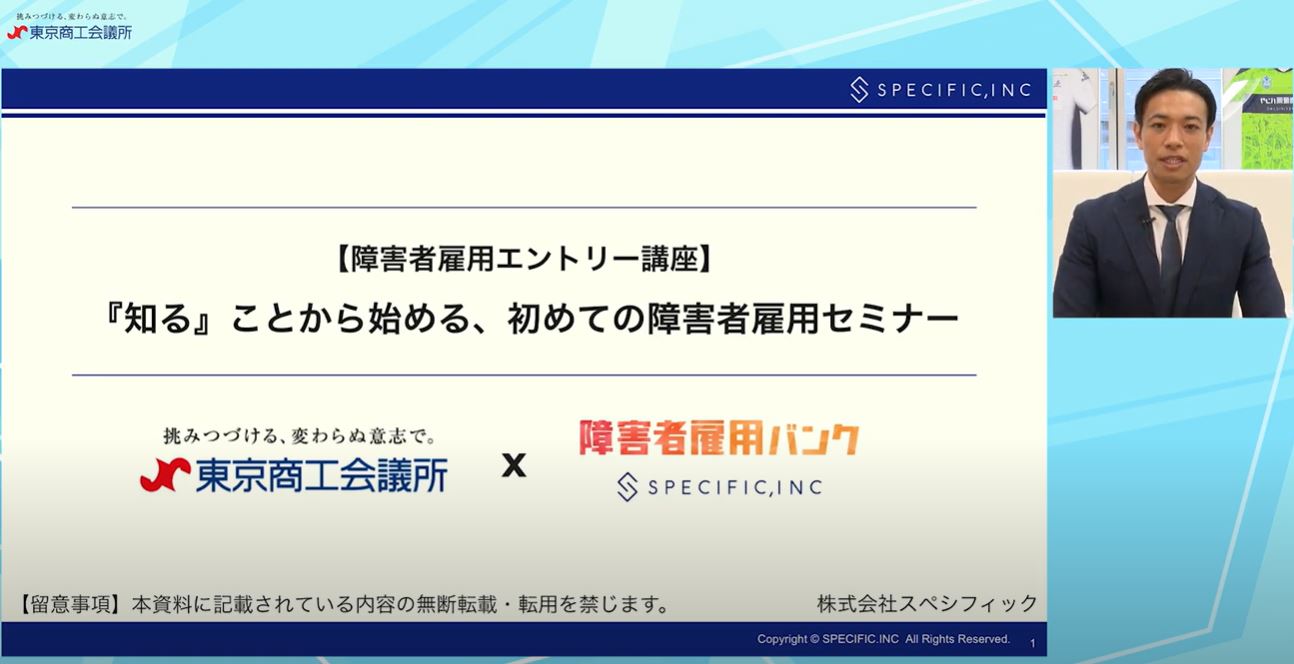 東京商工会議所産業政策第二部は、障害者雇用エントリー講座「『知る』ことから始める、初めての障害者雇用セミナー」をオンライン形式(録画配信)で開催いたしました(主催:多様な人材活躍委員会)。