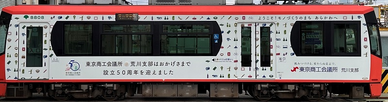 東京商工会議所 荒川支部(会長 富永新三郎・㈱新吉社長)は、支部設立50周年を記念する事業の一環として、2023年10月2日から東京さくらトラム・都電荒川線(以下「都電荒川線」)にて「支部設立50周年記念ラッピング都電」の運行を開始しましたのでお知らせいたします。当車両は2024年9月30日までの1年間運行する予定です。