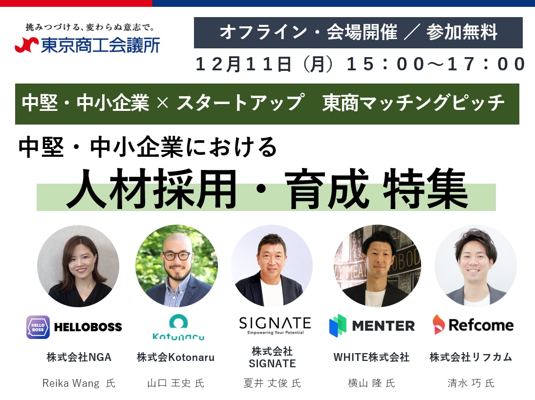 12月11日【中堅・中小企業 × スタートアップ 東商マッチングピッチ】人材採用・育成 特集を開催します