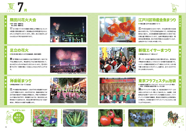 各区の観光協会や区役所などから寄せられた情報をもとに、都内で各月毎に行われるお祭りやイベント等の地域密着情報を掲載。国内外に向けて、地元東京の魅力を発信する。