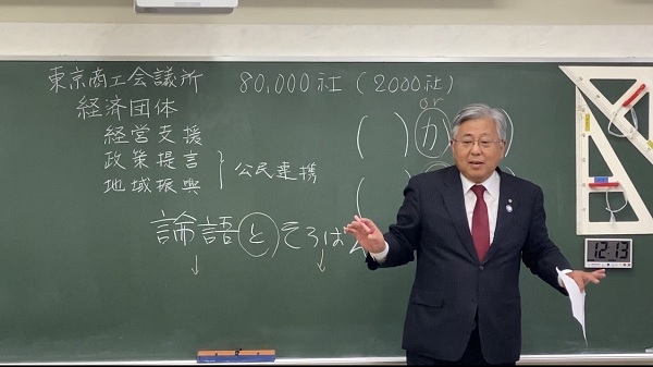 その後、北支部の越野充博会長による、渋沢栄一翁と起業家育成をテーマにした講話を実施。