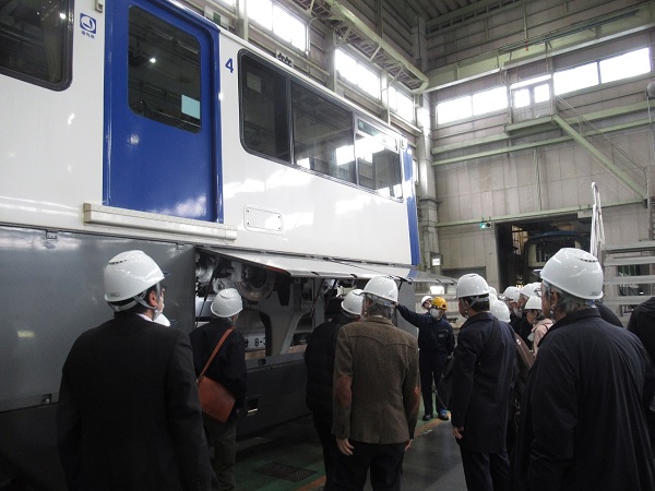 その後、通常非公開の「昭和島モノレール基地」を見学し、車両の整備や点検作業等についての説明を受けました。「アートファクトリー城南島」では、廃棄物から作成した作品など、個性的な美術作品を施設の方の説明を受けながら鑑賞しました。