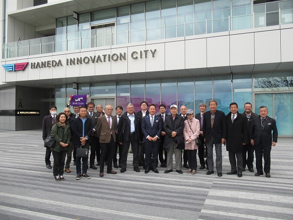 まず羽田空港に隣接する「羽田イノベーションシティ」を視察し、公益財団法人大田区産業振興協会から施設の説明を受けました。同施設は大田区と官民連携で開発を進める大規模複合施設で、延床面積約13万m2を超える建物に、研究開発施設・オフィス、先端医療センター、イベントホール、宿泊施設、日本文化体験施設、飲食施設などが集積し、11月16日にグランドオープンし、産業交流などが期待されています。同施設内の飲食店「HANEDA SKY BREWING」での昼食では同店経営者で、東京商工会議所のTOKYO YEG AWARDS 2022優秀賞を受賞した大屋幸子(株)大鵬社長からお話を伺いました。
