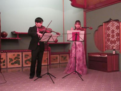 また、交流の懸け橋となる催し物として、豊島区・目黒区にキャンパスを置く「東京音楽大学」の学生2名に、合同例会に合わせたヴァイオリン二重奏のオリジナルメドレーを考案いただきました。ヴァイオリンならではの迫力ある音色と壮大なシンフォニーを傾聴し、盛況のうちに終了・閉会いたしました。