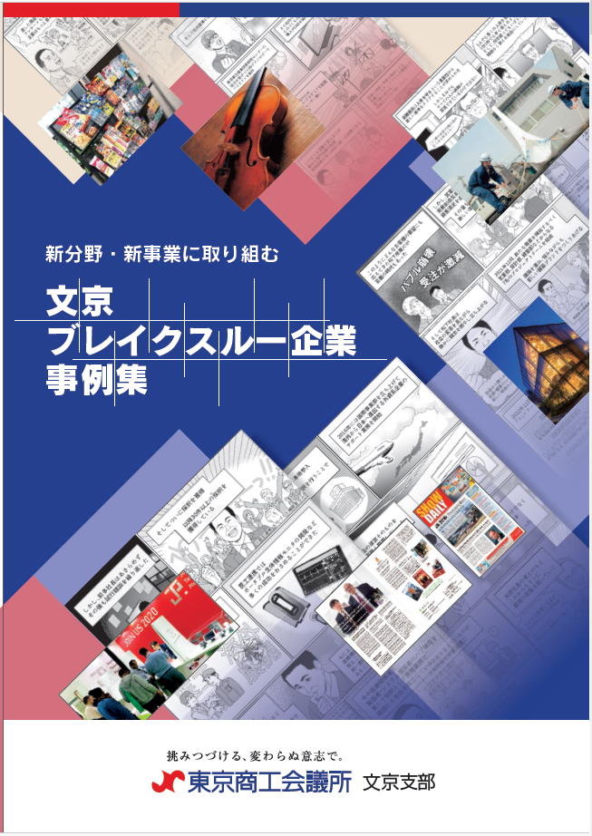 東京商工会議所文京支部(吉岡新会長・共立速記印刷(株) 会長)は、厳しいビジネス環境においても、新事業・新分野への取り組みを継続している企業の好事例について、解説記事とマンガで紹介する「文京ブレイクスルー企業事例集」を発行しましたので、お知らせします。