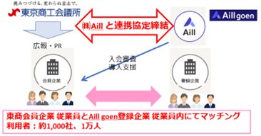 東京商工会議所は、東京の将来を考える懇談会(座長:中山泰男・セコム(株)会長)において、少子化対策と中小企業の人手不足対策を推進するため、AI 縁結びナビアプリ「Aill goen(エール ゴエン)」を運営する株式会社 Aill(エール)と、初めて連携協定を締結しました。本協定に基づき、4月1日(月)より「Aill goen」の仕組みを活用し、東商会員企業従業員に、安全・安心な出会いの場を創出するサービスを開始します。