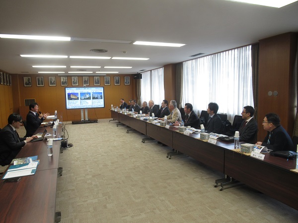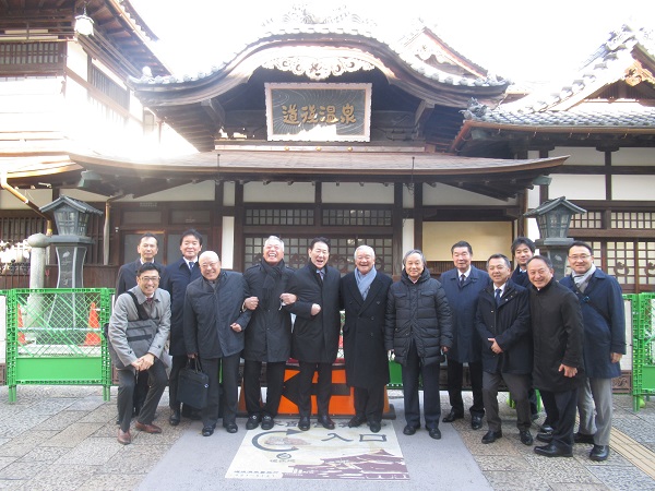 一行はまず、松山商工会議所を訪問、「未来に繋ぐ道後温泉の観光まちづくり」と題して、同商工会議所の宮﨑副会頭((株)宝荘ホテル社長)より、道後温泉の歴史と現状、景観整備を始めとした観光まちづくりについて、ご講演をいただきました。