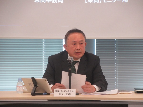 流通・サービス委員会(委員長=宮入正英・株式会社宮入社長)は3月21日、第4回流通・サービス委員会をハイブリッド形式にて開催し、28名(会場20名、オンライン8名)が参加しました。
