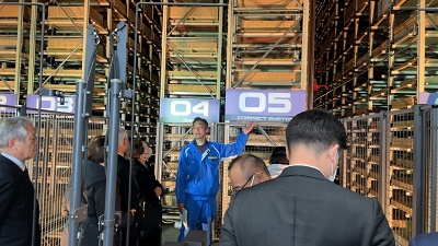 午前中は日鉄鋼板株式会社東日本製造所にて普段立ち入ることのできない「鋼板」の製造現場を視察するとともに、午後からは竹尾物流株式会社湾岸デポにてデッドスペースを最小化させた高層自動ラックなどの最新物流システムや、ユーザーフレンドリーを実現させた「新しい倉庫のカタチ」を視察しました。