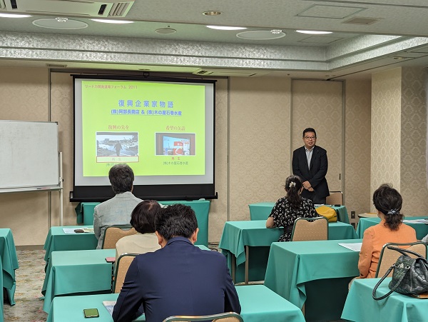 気仙沼商工会議所水産部会長の阿部 泰浩さま(株式会社阿部長商店代表取締役)をお招きし、震災当時の様子から自社や地域がどのように復興してきたのか、担い手の立場からのお話をお伺いしました。2日を通じて地域ごとの近況を知ることができる、大変有意義な機会となりました。