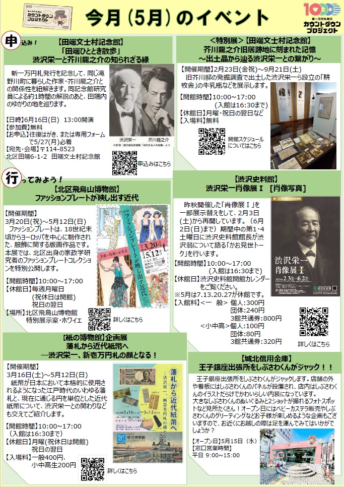 【北支部・新一万円札発行カウントダウンプロジェクト】5月も新札発行に向け様々なイベントが開催されます!