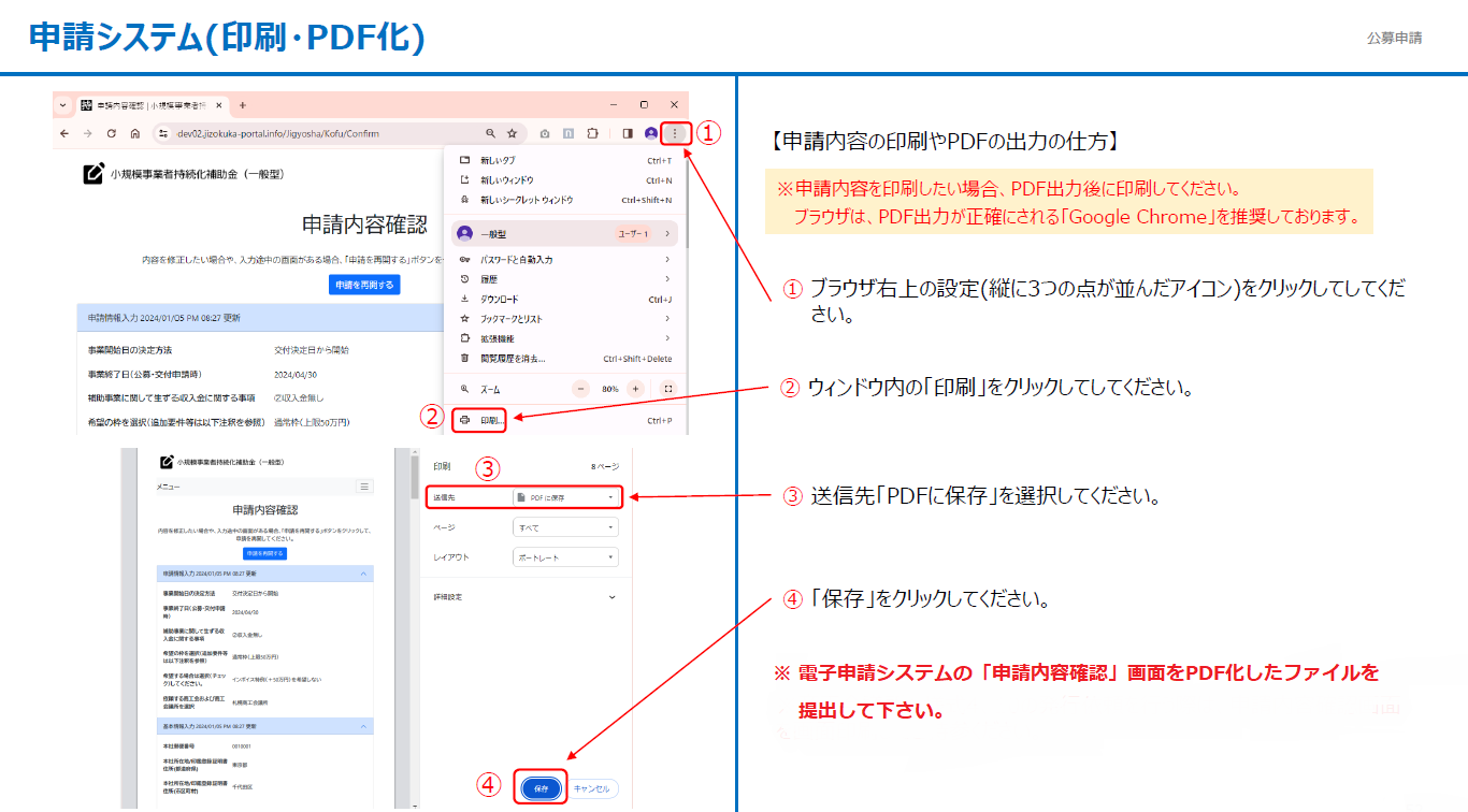 ※申請システムへの入力およびPDF化・印刷の方法についての下記参照ください。