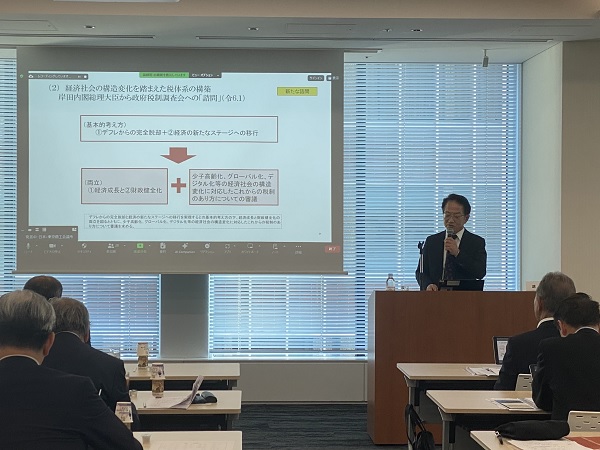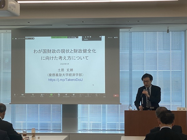 勉強会では、PwC税理士法人・佐々木浩氏から「近年の税制改正と今後の展望」について、慶應義塾大学経済学部・土居丈朗教授から「わが国財政の現状と財政健全化に向けた考え方」について、それぞれ講演を聴いた後、意見交換が行われました。