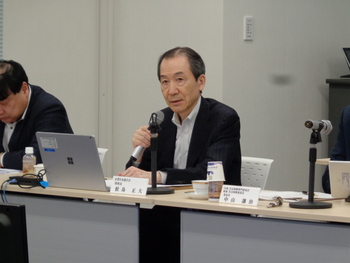 会議では、まず、日東カストディアル・サービス株式会社常務取締役 小西 英司 (こにし えいじ)様から同社における「被用者保険の適用拡大・年収の壁」への対応について、続いて、企業年金連合会理事長 鮫島 正大(さめじま まさひろ)様から企業年金の現状や普及・拡大にかかる課題、および同連合会における普及・拡大に向けた取組について、それぞれご説明をいただきました。次に、厚生労働省 政策統括官(総合政策担当)付 政策企画官 安田 正人(やすだ まさと)様(当初予定だった安藤公一参事官の代理)から、昨年末に閣議決定された「全世代型社会保障構築を目指す改革の道筋(改革工程)」に基づき4月から検討が始められた「医療・介護保険における金融所得の勘案」の現状と課題について、ご説明をいただきました。