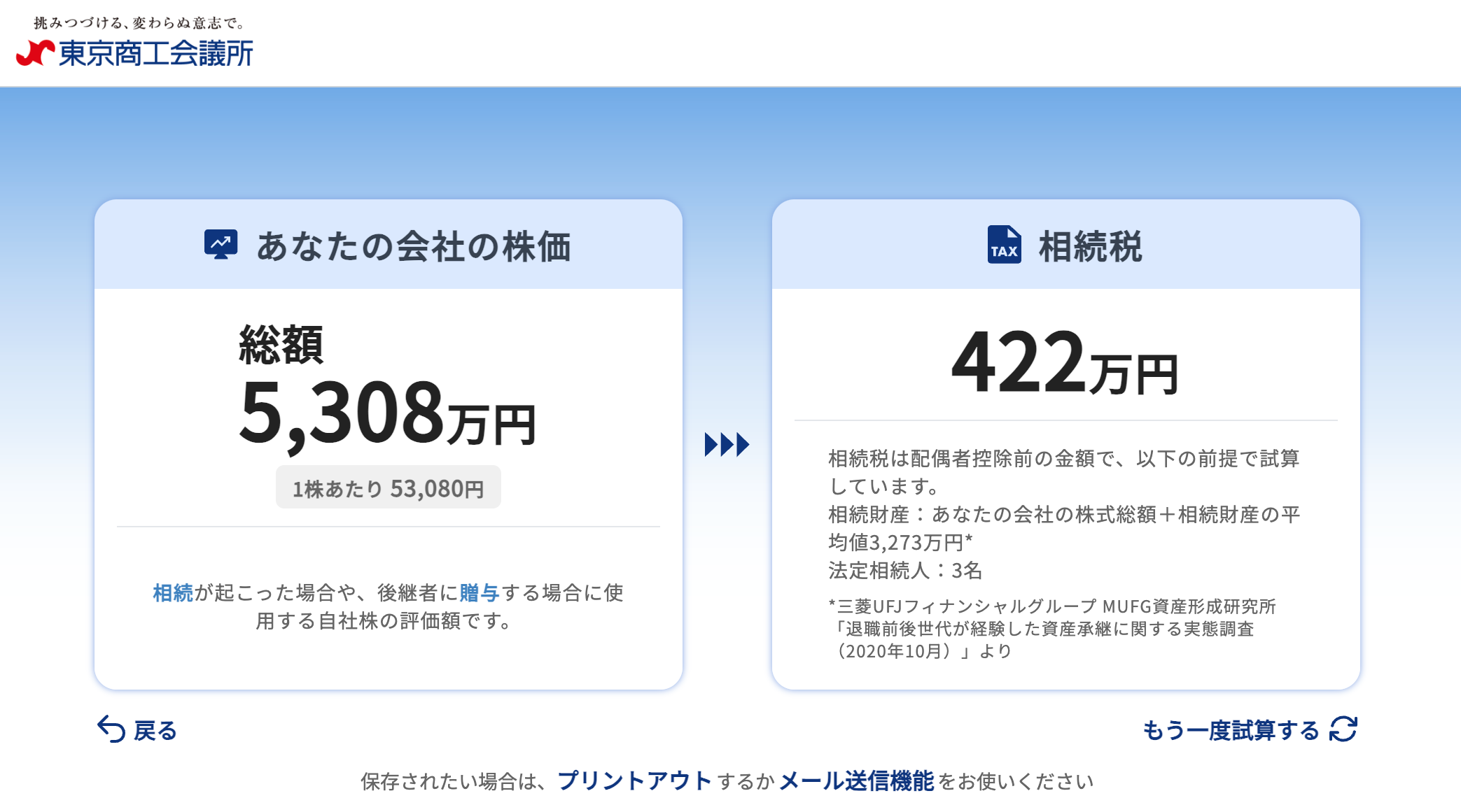 試算結果は印刷・メール送信が可能