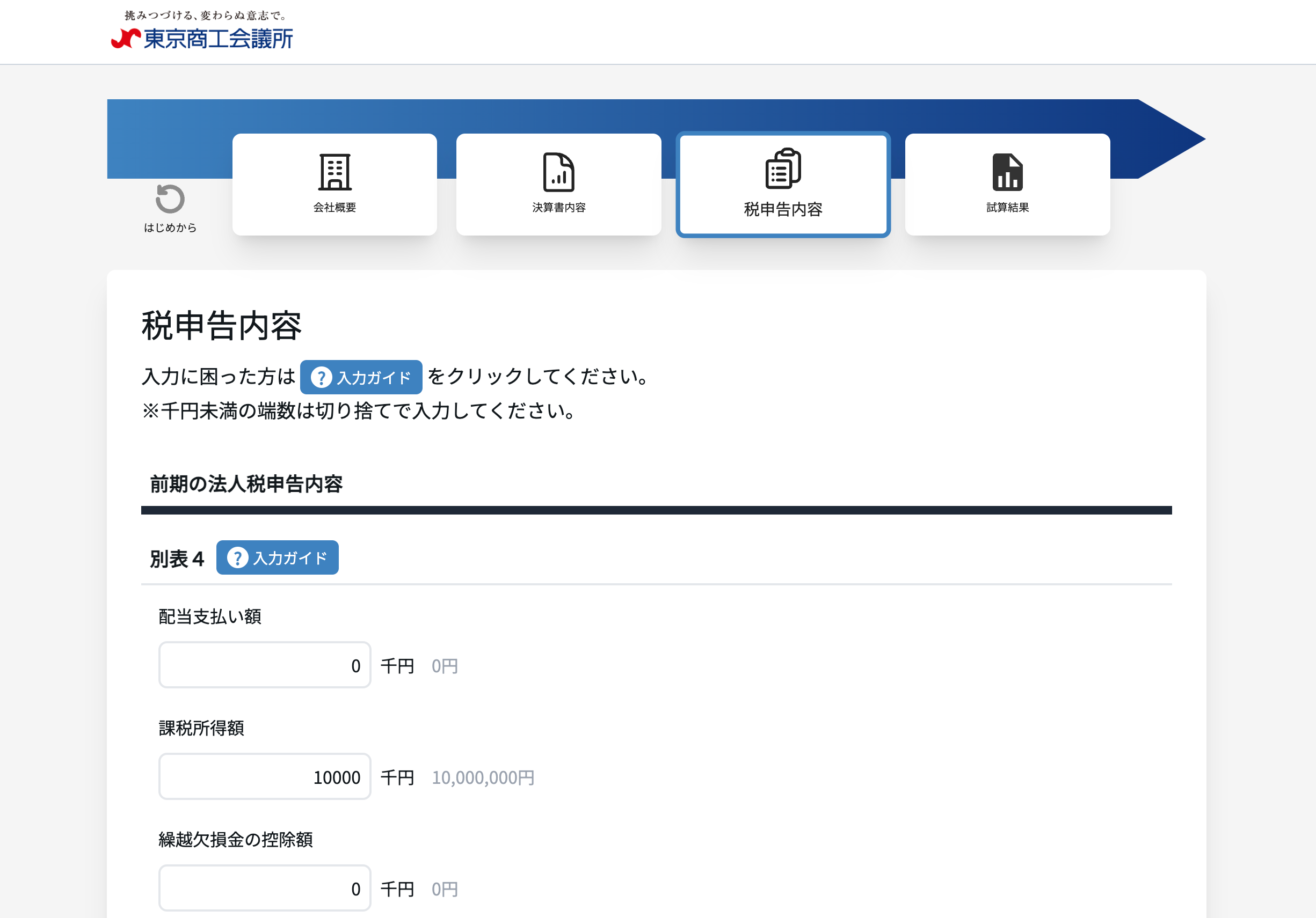 2.業種などの会社概要、売上高や総資産額などの決算情報、資本金等の税申告情報を入力