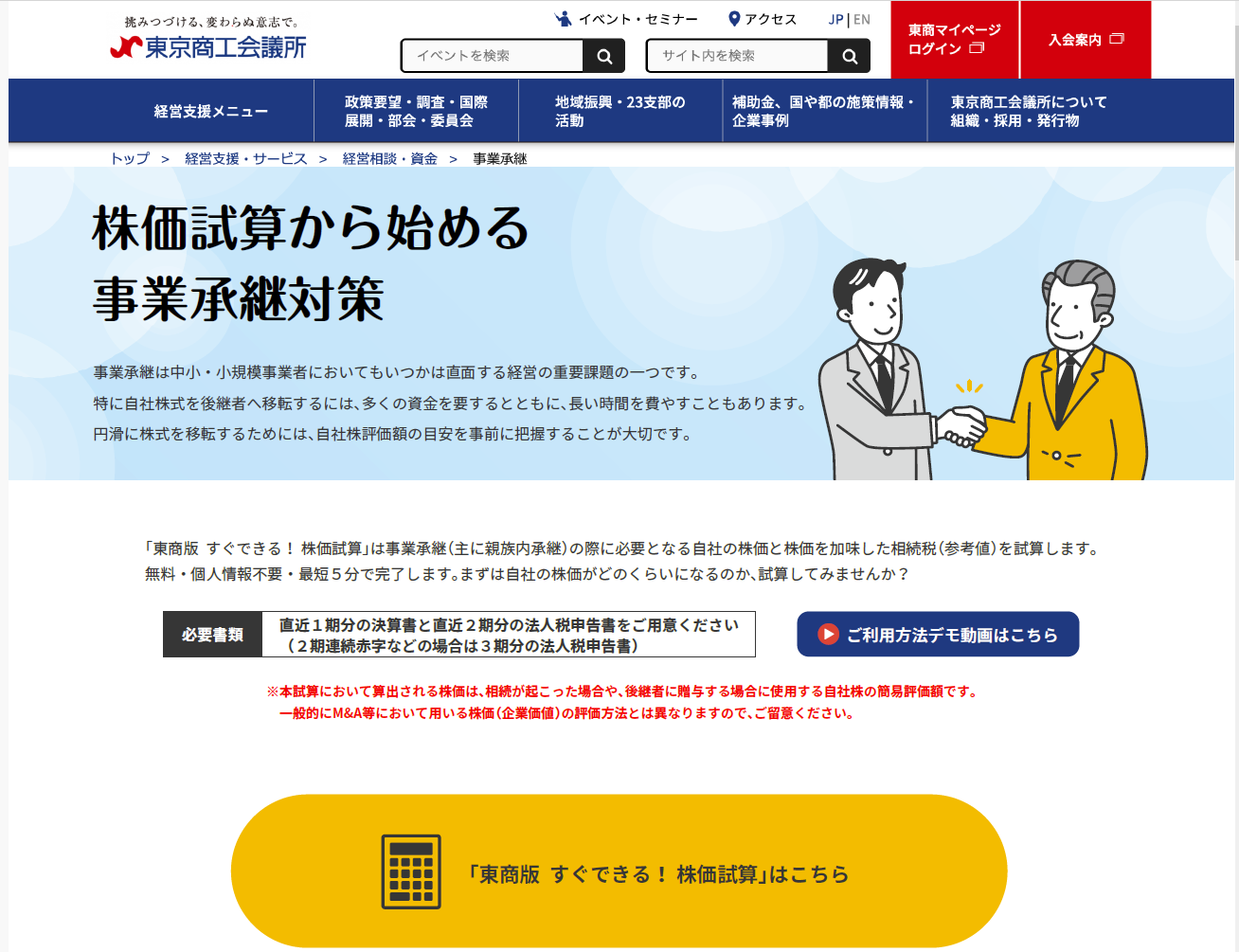 事業承継対策の第一歩「東商版 すぐできる!株価試算」のサービス開始について