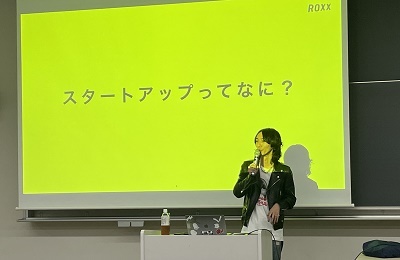 講演では、学生時代の経験や起業に至るまでの経緯、起業に必要な考え方についてお話しいただきました。