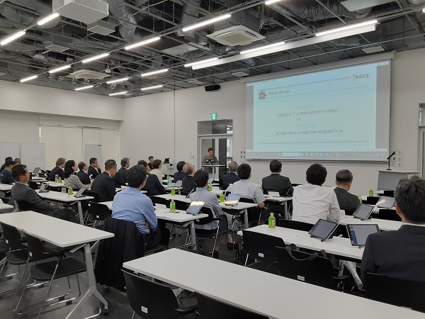 情報経営イノベーション専門職大学の紹介とDX人材育成の取り組みの説明に加え、長期インターンシップを経て民間企業のシステム人材として就職した卒業生や、在学中に起業し地域課題解決に取り組む学生による発表がありました。その後校内施設の見学を経て、教育機関との意見交換会が行われ、中小企業のデジタルシフト・DX推進に向けた人材育成のあり方や必要な方策について活発な議論が行われました。