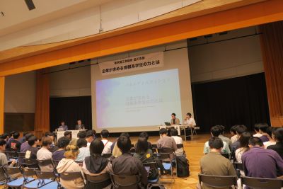 企業側は㈱大崎コンピュータエンヂニアリング、㈱エー・アール・シー、東京システムハウス㈱、コグラフ㈱の4社が参加し、当日はパネルディスカッション94名、インターンシップ説明会22名の学生が参加しました。