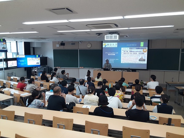 東京商工会議所荒川支部(富永新三郎会長・(株)新吉社長)と荒川区自然科学フォーラムは、7月6日(土)、著名な物理学者である東京大学大学院理学系研究科物理学専攻・教授の中村哲(なかむら さとし)氏による特別講義を東京大学本郷キャンパスで開催し、荒川区内の中学生を中心に40名の参加者が集まりました。