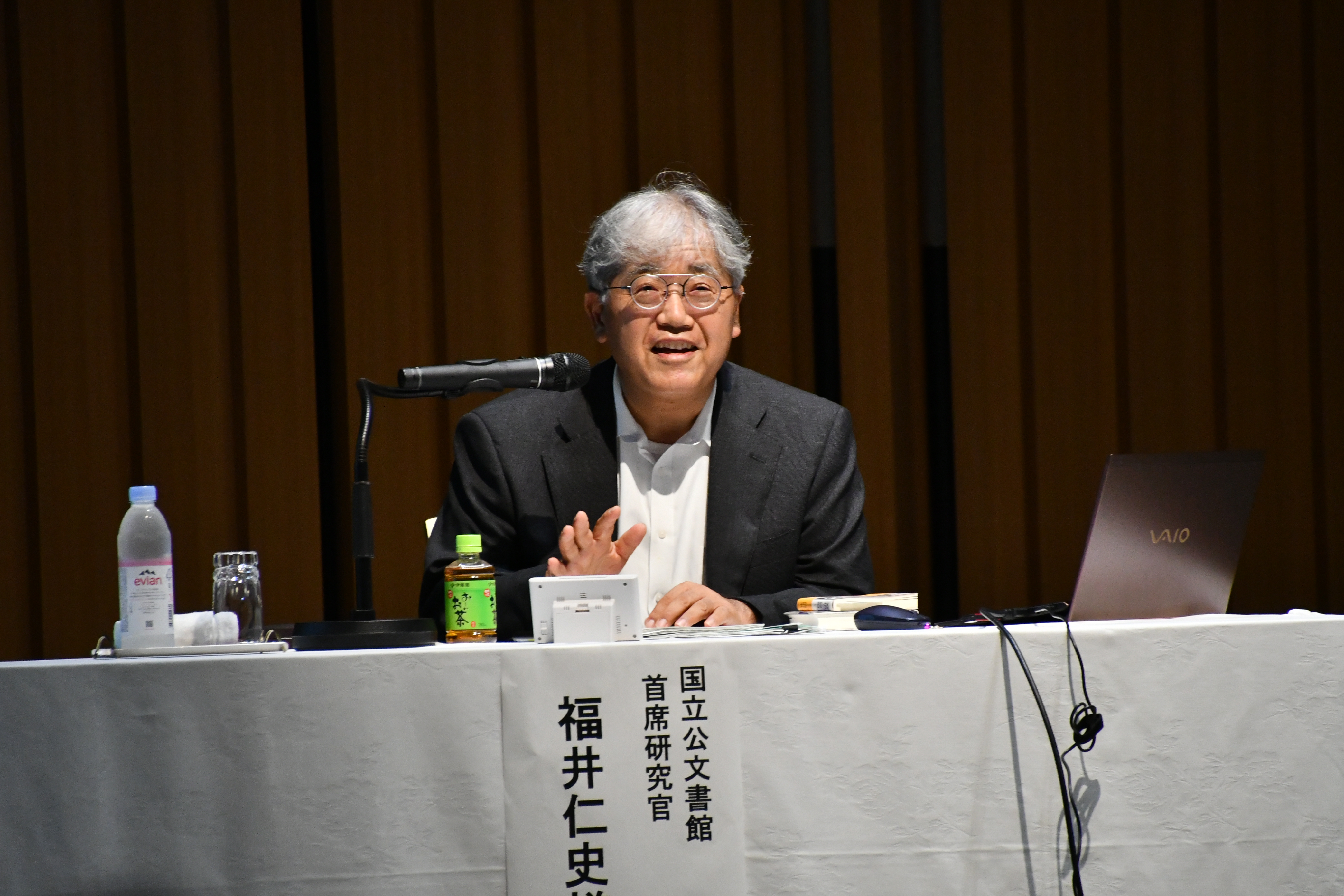 福井氏は、国立公文書館が保有し公開している「特定歴史公文書」の中から、渋沢翁の活動が記された様々な文書を紹介し、その活動にまつわるエピソードや背景を解説しました。その一つとして、渋沢翁が起草を担当した「国立銀行条例」を各府省に通達した際の文書を紹介。本条例を通じ日本の銀行制度の基礎を築いた渋沢翁について福井氏は「文書で物事を規制する能力は圧巻だった」と語りました。